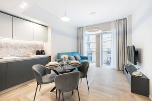 Cada apartamento cuenta con aire acondicionado en todas las estancias, zona de estar y televisión con pantalla plana equipada con servicios de streaming. Dispone de uno o dos dormitorios independientes junto con salas de estar que incluyen sofás cama o sofás como opciones adicionales para dormir. Las cocinas americanas están completamente equipadas con placas eléctricas, frigoríficos, lavavajillas, microondas, cafeteras, hervidores eléctricos y utensilios, además cuentan con mesas para disfrutar las comidas en casa.