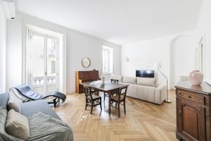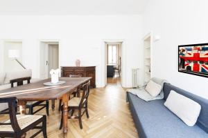 The spacious apartment has 2 separate bedrooms, 2 bathrooms, a fully equipped kitchen with a dining area and oven, and a living room with a TV. Towels and bed linen are offered at Easylife - Milano - Castaldi 41 - Porta Venezia.