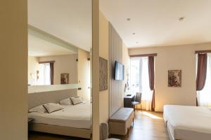 Guests benefit from free WiFi available throughout the premises alongside flat-screen TVs offering cable channels and streaming services. On-site amenities include a coffee shop serving Italian breakfast options that can also be enjoyed in-room via room service. Additional facilities cover luggage storage, daily housekeeping, lift access to upper floors where rooms are located as well as electric vehicle charging stations. Concierge services complement private check-in/check-out procedures while parking garage spaces accommodate vehicles.