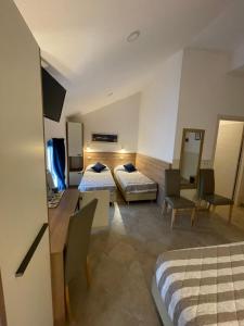 Le camere dell'Hotel Montecarlo dispongono di aria condizionata, cassaforte, TV a schermo piatto e bagno privato con set di cortesia e asciugacapelli.