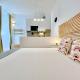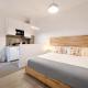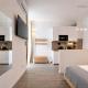 Each studio features tiled floors and comes equipped with a fully fitted kitchen that includes an oven, stovetop, refrigerator, microwave, coffee machine, electric kettle as well as kitchenware and dining table facilities. Guests will find a flat-screen TV with streaming services alongside a private bathroom furnished with shampoo, body soap, complimentary toiletries, hairdryer, bidet and toilet.
